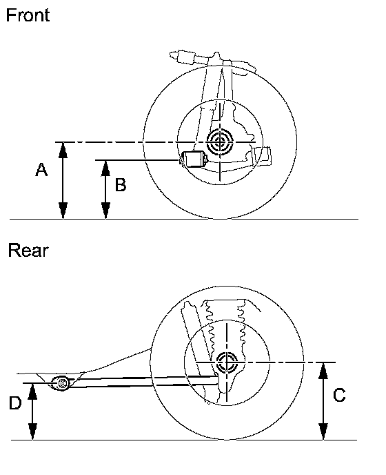 NOTICE: Before inspecting the wheel alignment, adjust the vehicle height to the specified value. If the vehicle height is not the specified value, try to adjust it by pushing down on or lifting the body