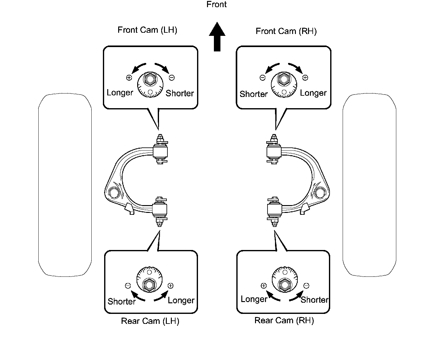 b) Adjust the camber and caster using front and/or rear adjusting cams.