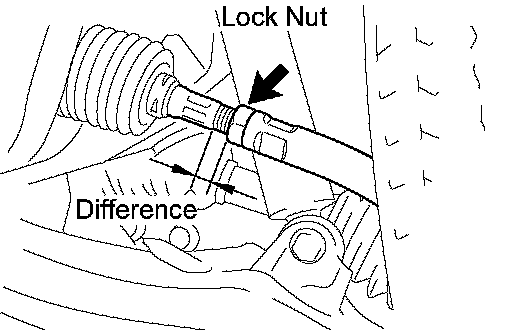 If the right and left inside wheel angles differ from the specified value, check the right and left rack end lengths.