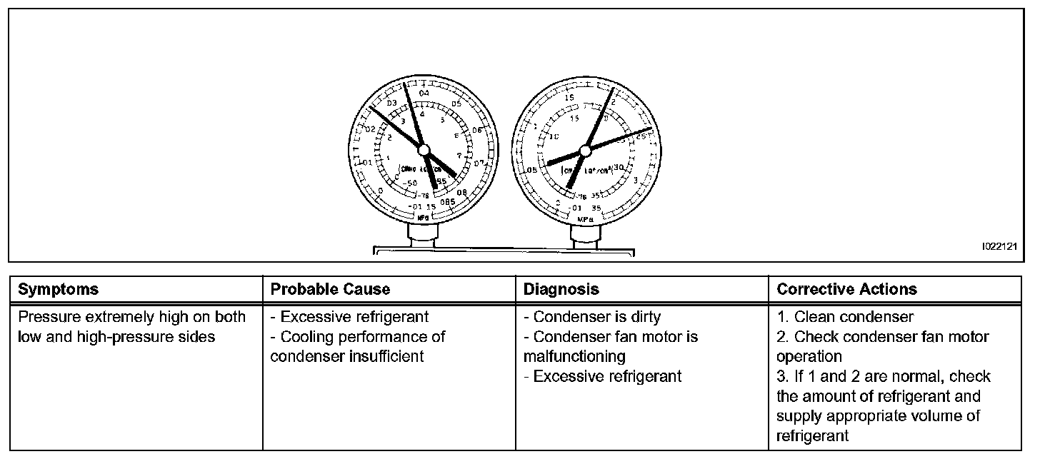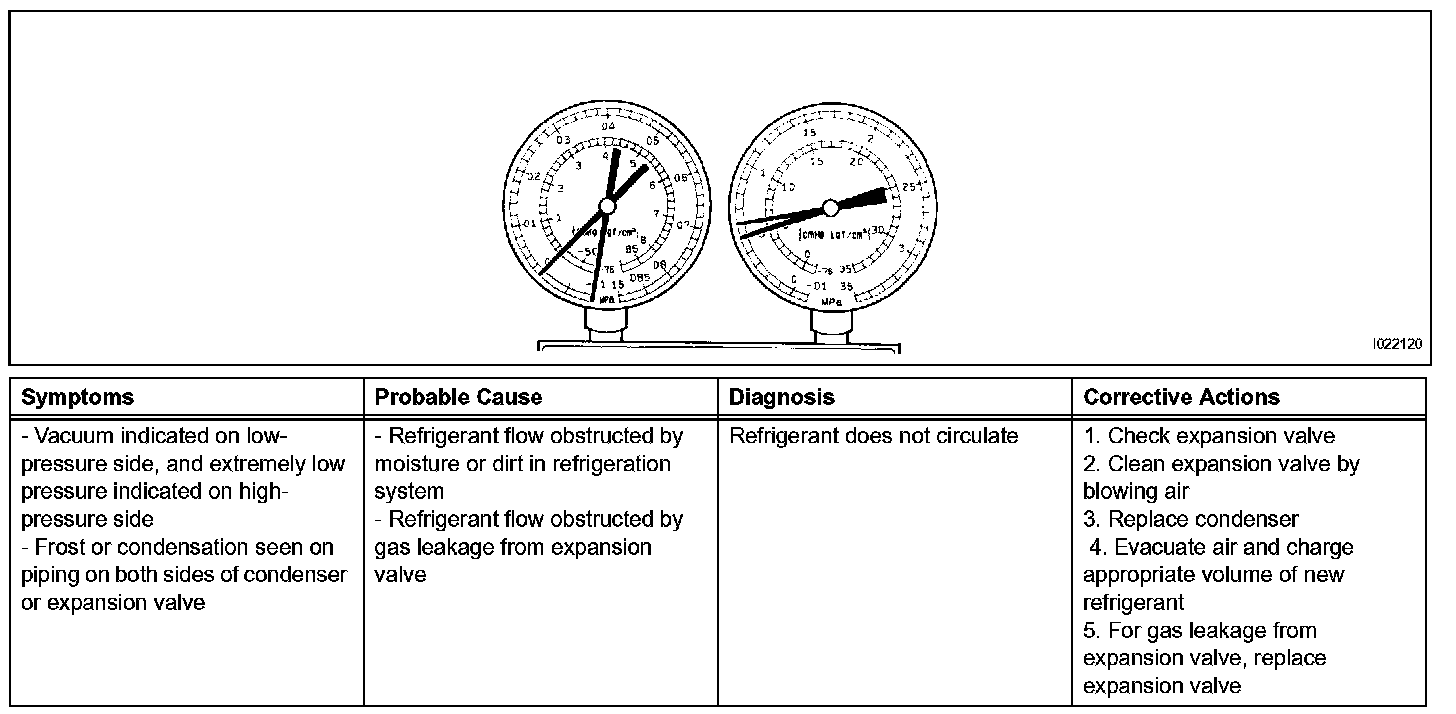 a. This method uses a manifold gauge set to locate problem areas. Read the manifold gauge pressure when these conditions are established.
