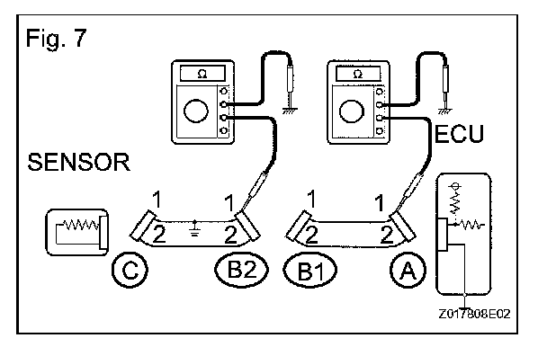 1. Disconnect connectors A and C and measure the resistance.