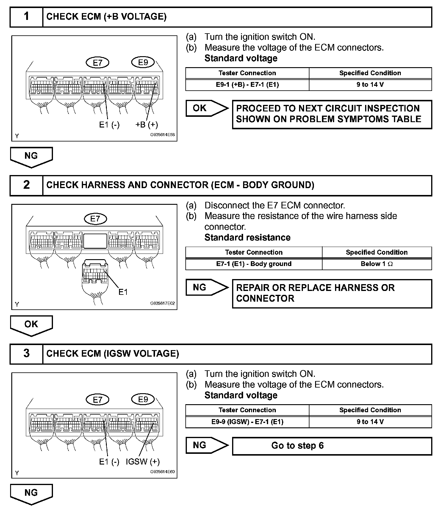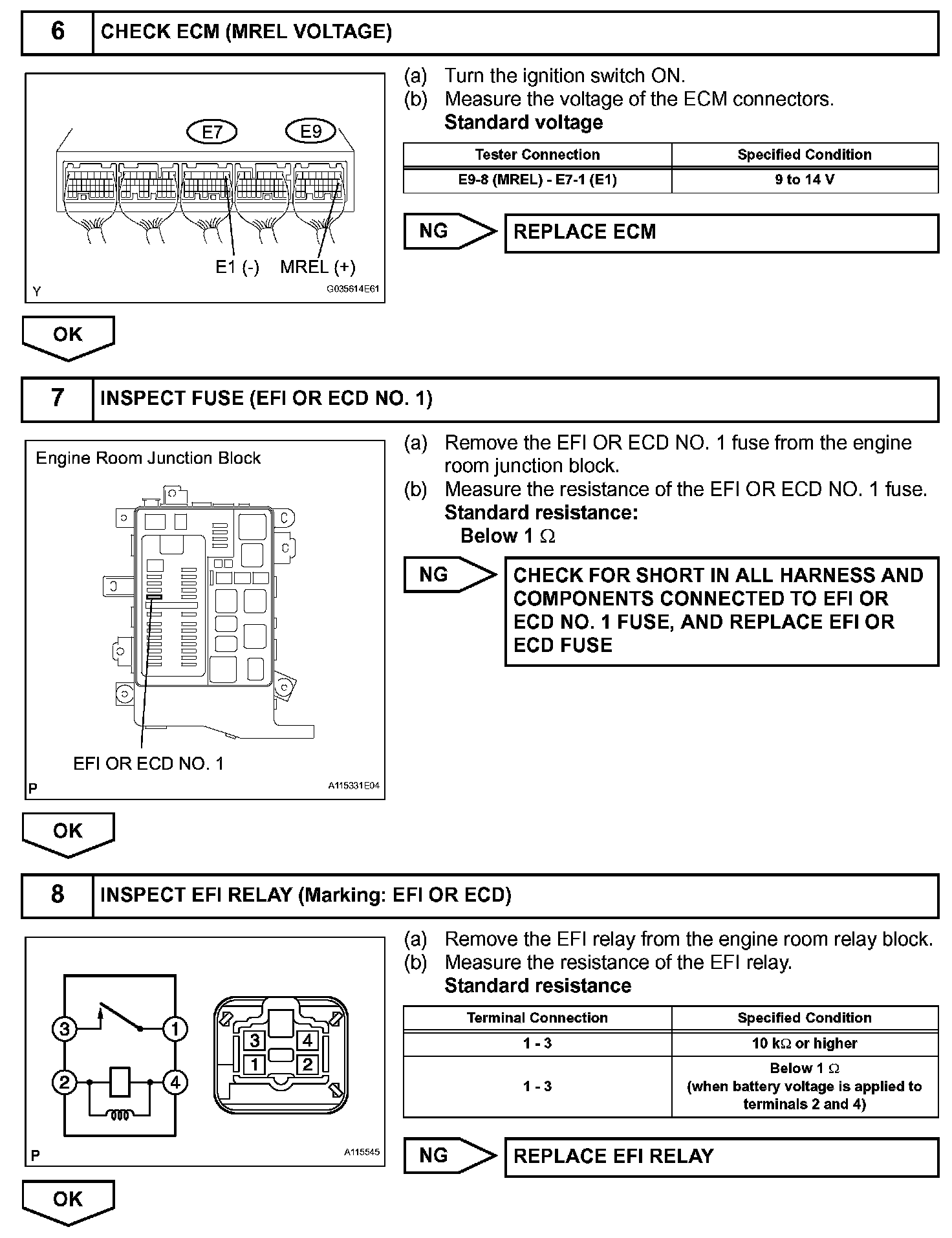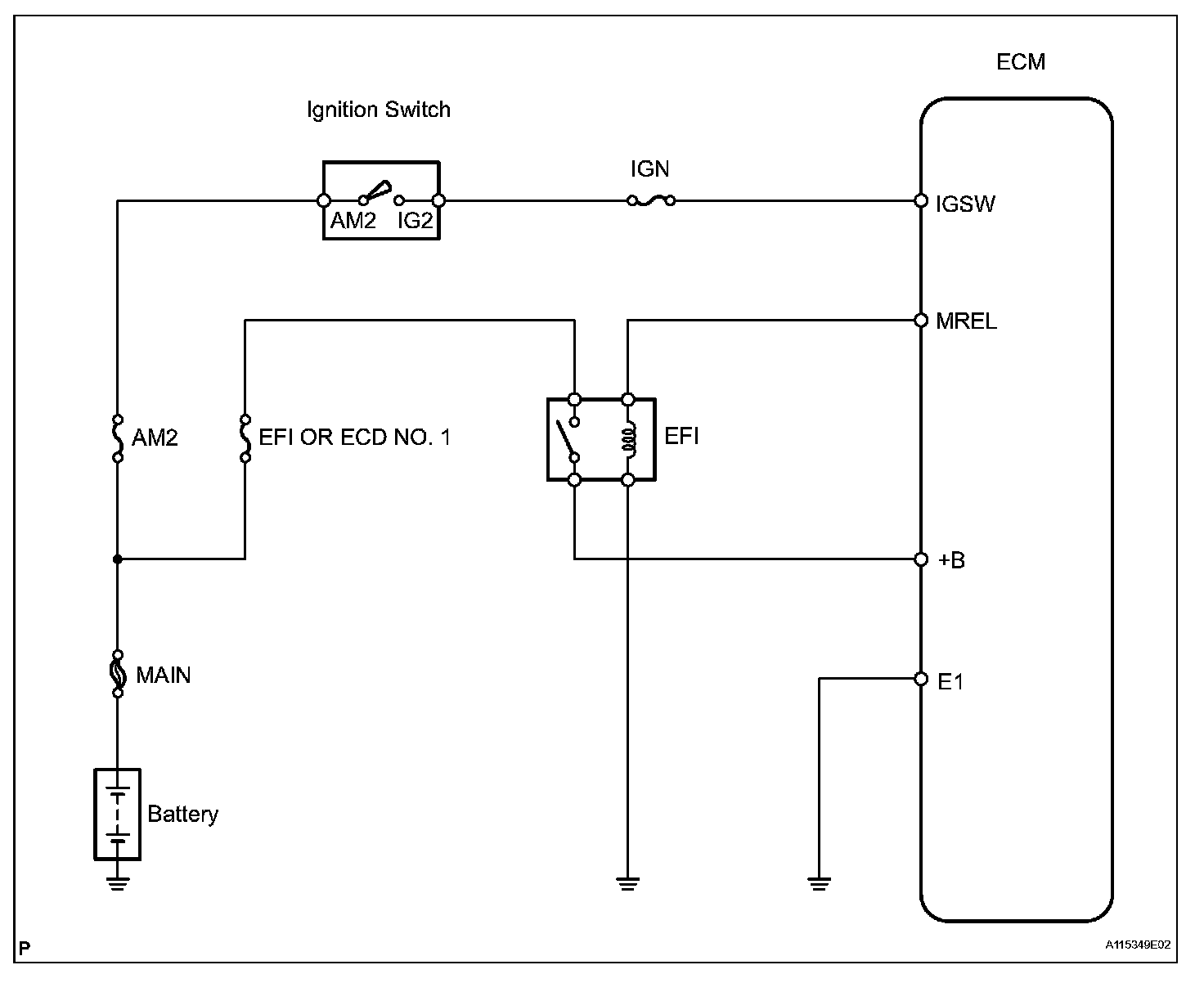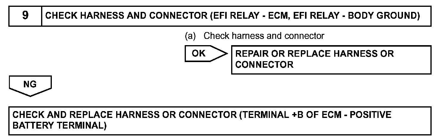 This signal causes current to flow to the coil, closing the contacts of the EFI relay and supplying power to terminal +B of the ECM.