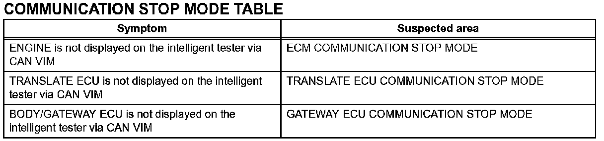 Problem Symptoms Table-Communication Stop Mode Table: