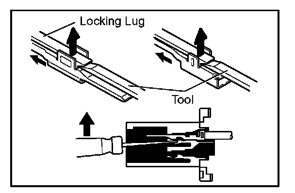 a. Locking device must be disengaged before the terminal locking clip can be released and the terminal removed from the connector.