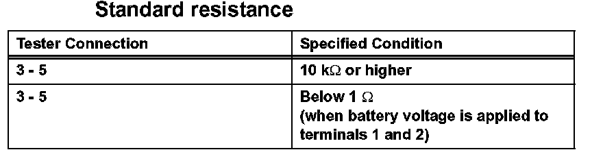 If the result is not as specified, replace the relay.