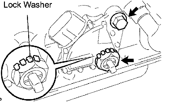 b) Remove the lock nut and lock washer.