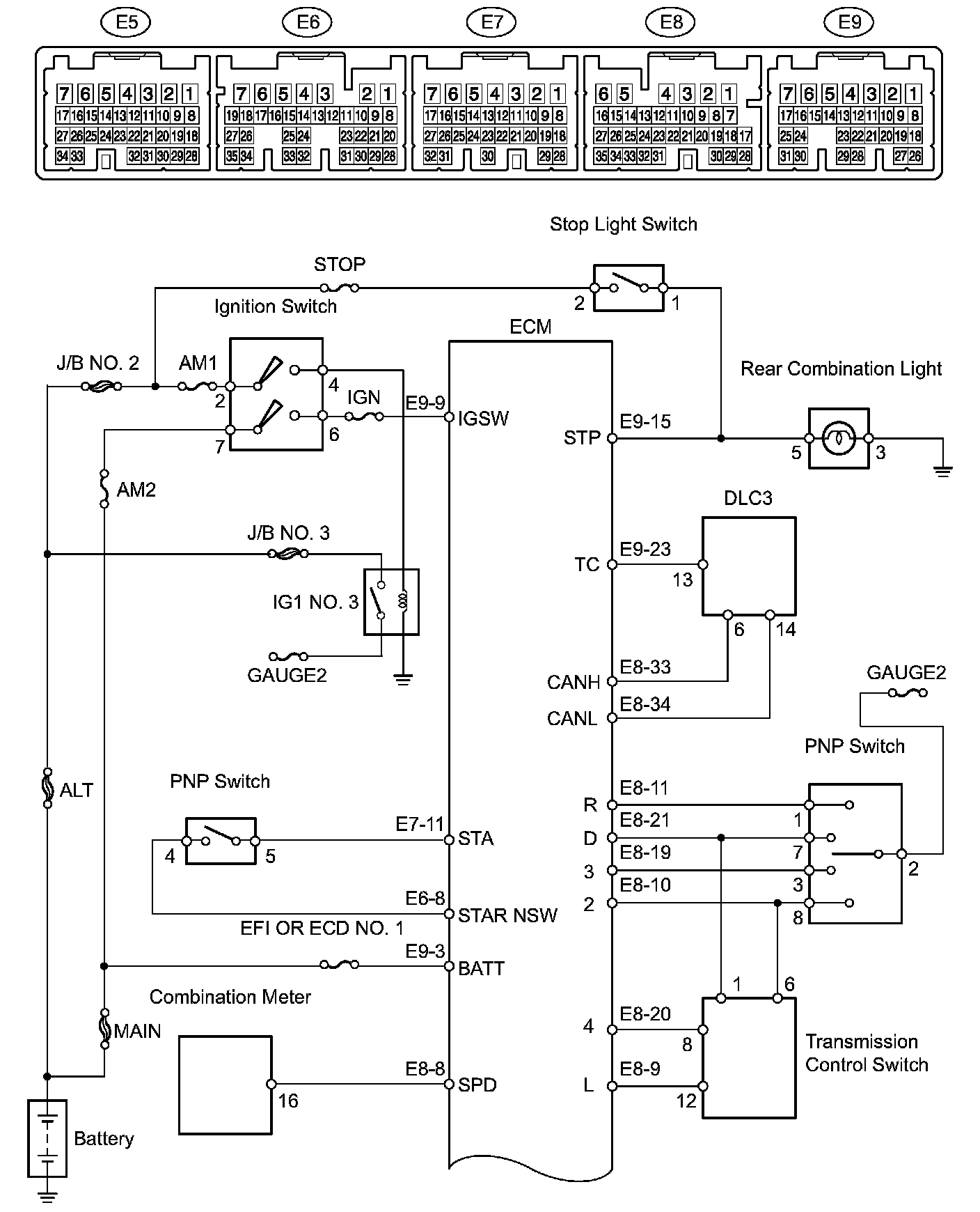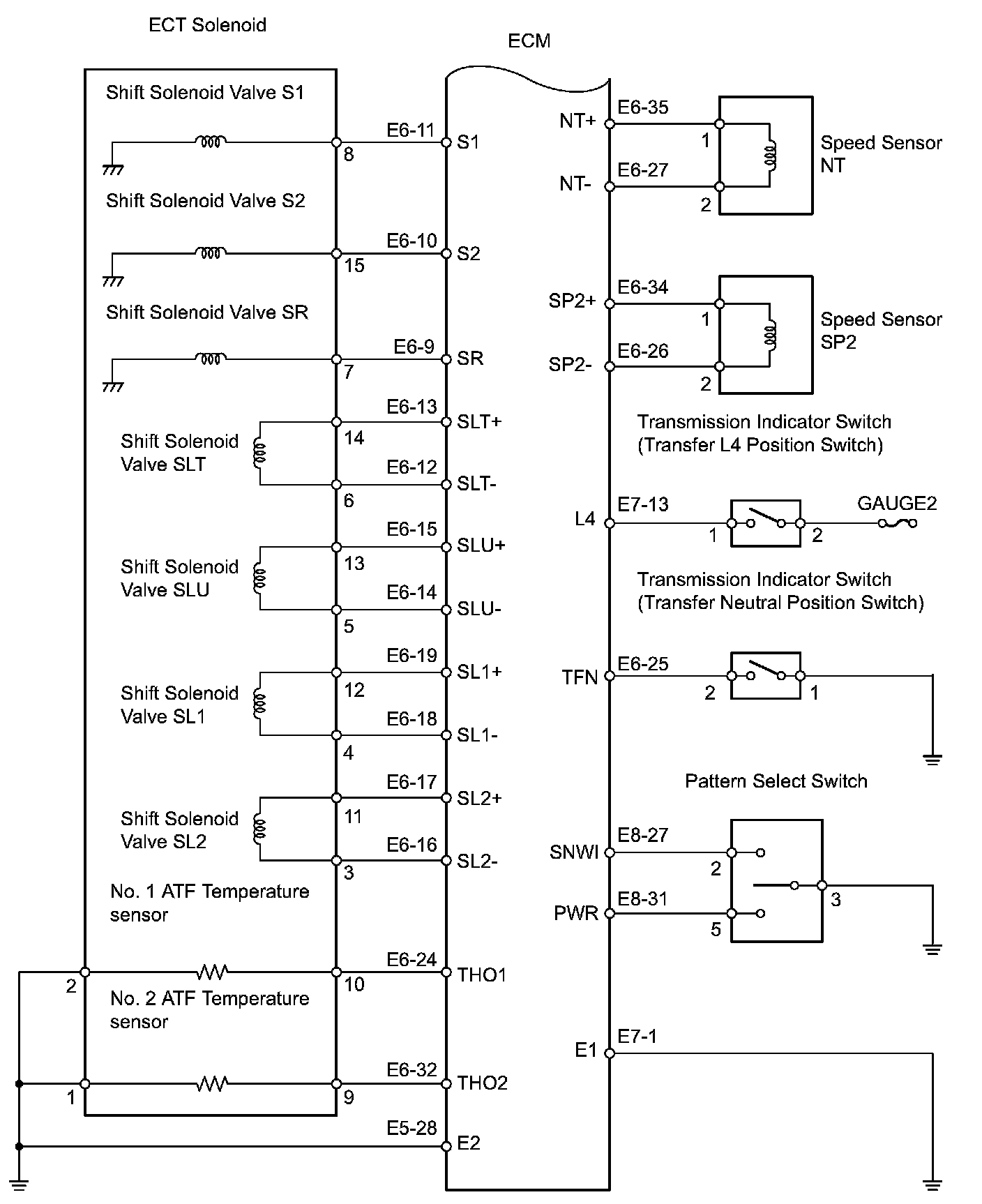 a) The Electronic Controlled Automatic Transmission (ECT) is an automatic transmission that electronically controls shift timing using the Engine Control Module (ECM). The ECM detects electrical signals that indicate engine and driving conditions, and controls the shift point, based on driver habits and road conditions. As a result, fuel efficiency and power transmission performance are improved. Shift shock has been reduced by controlling the engine and transmission simultaneously.