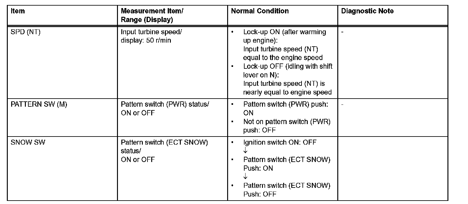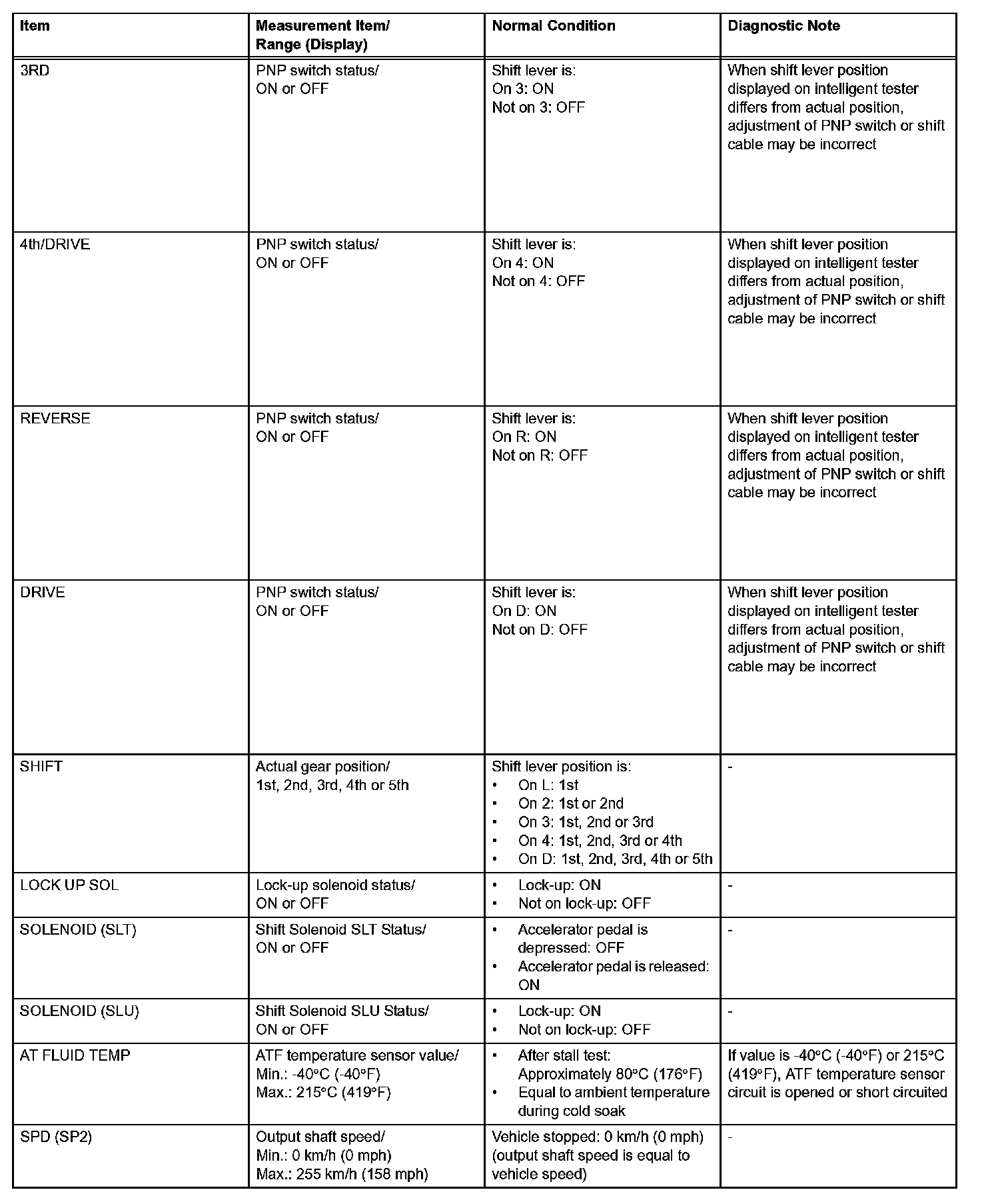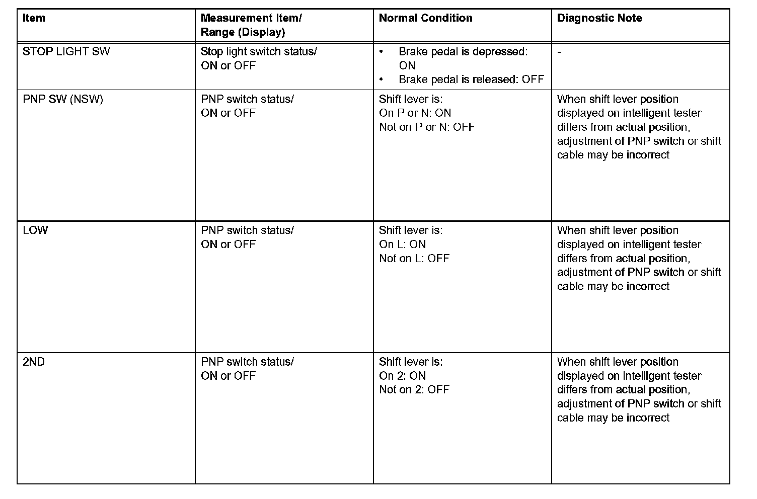 HINT: Using the intelligent tester's DATA LIST allows switch sensor, actuator, and other item values to be read without removing any parts. Reading the DATA LIST early in troubleshooting is one way to save time.