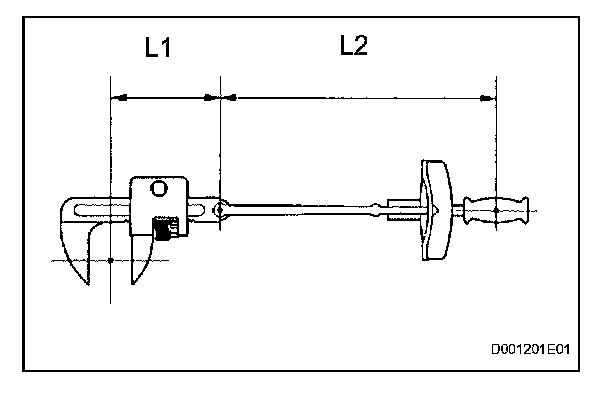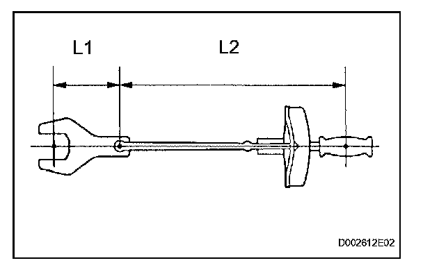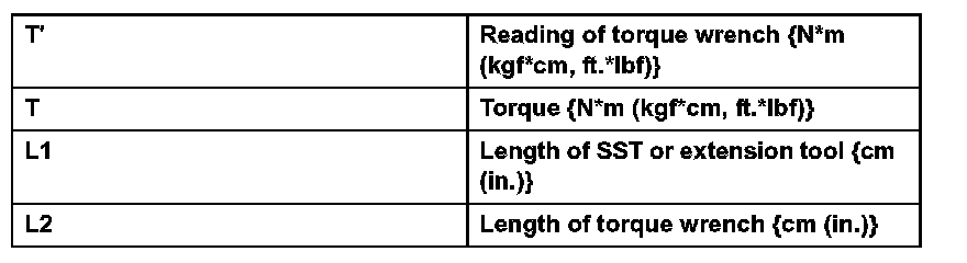 1. Use the formula below to calculate special torque values for situations where SST or an extension tool is combined with a torque wrench.