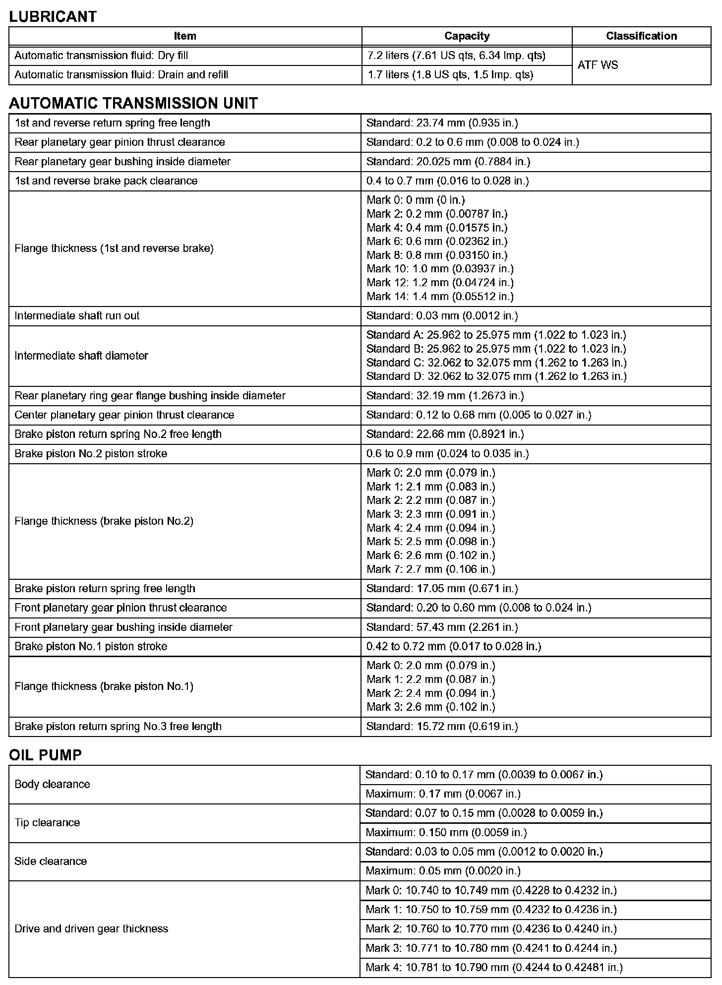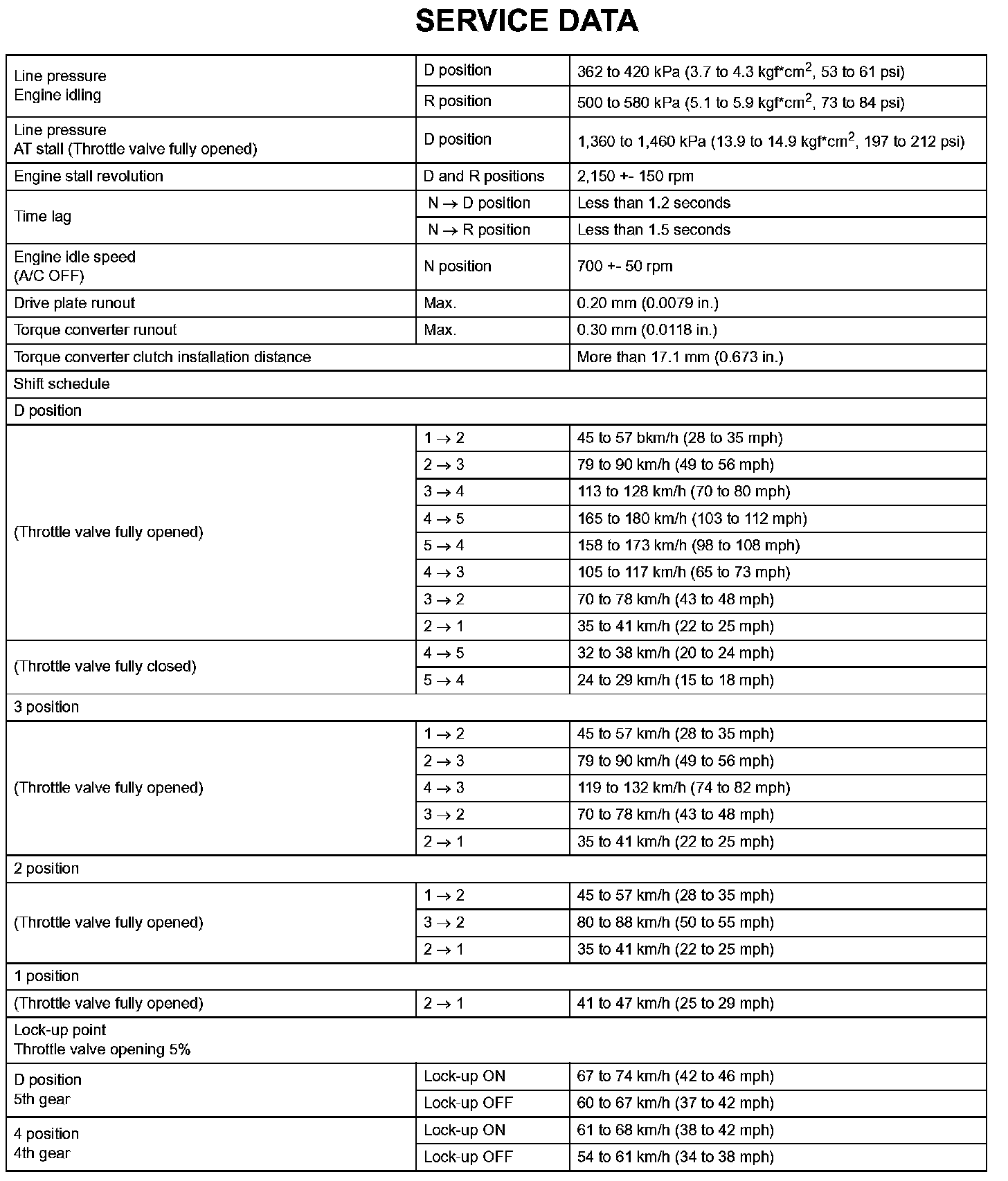 Automatic Transmission-Service Data (Part 2):