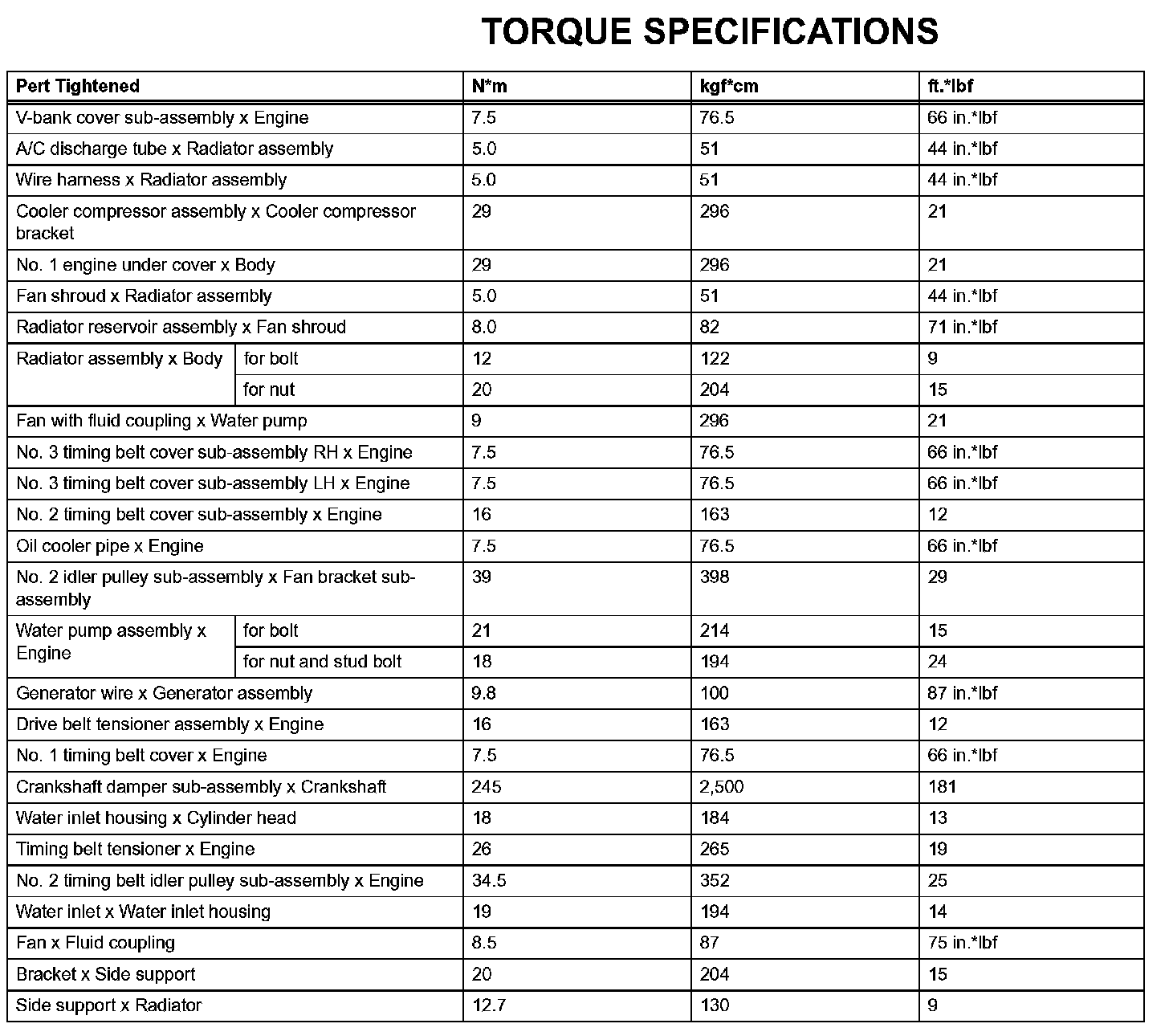 Cooling-Torque Specifications: