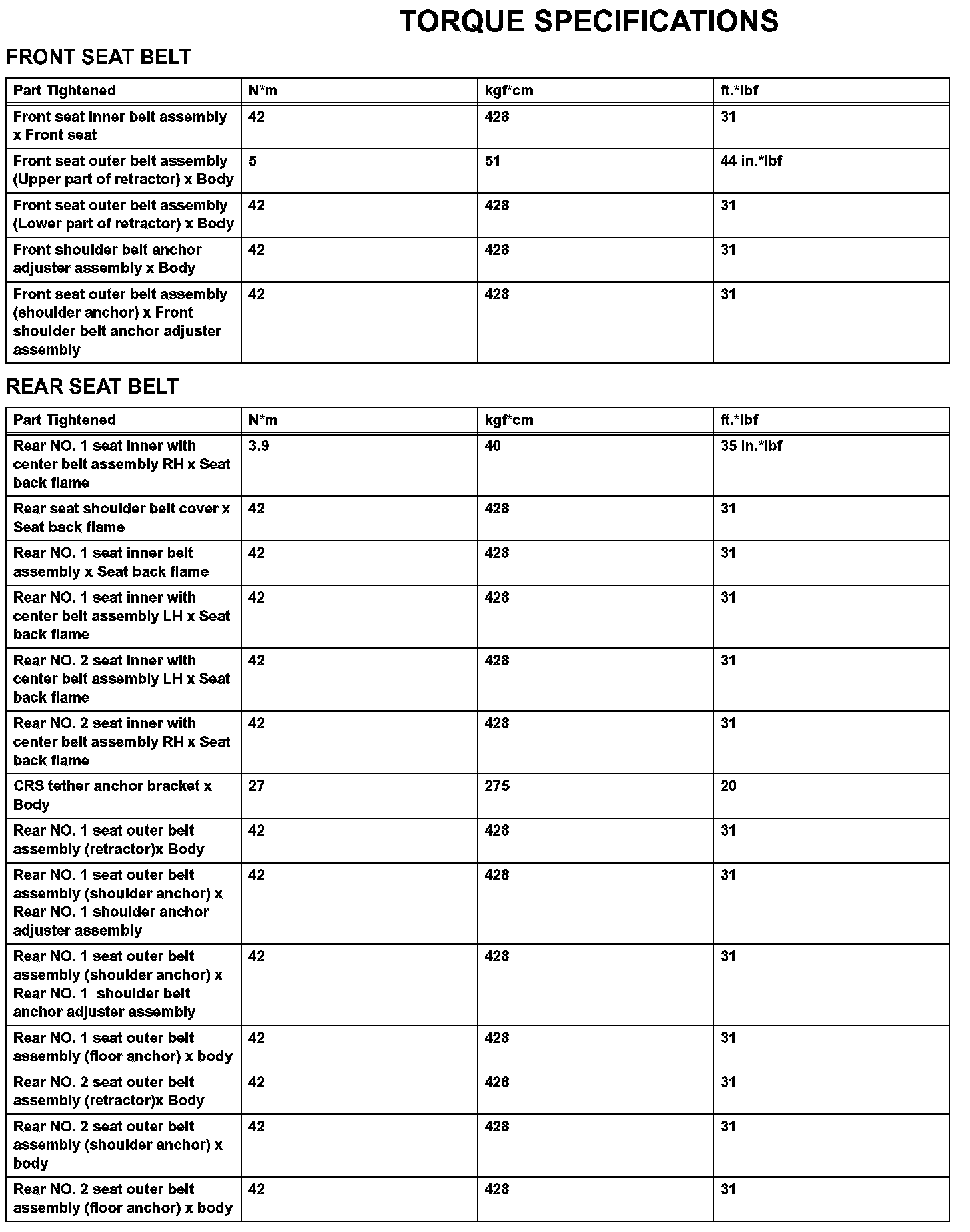 Seat Belt-Torque Specifications: