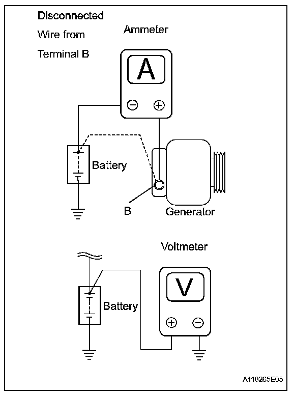 1. Disconnect the wire from terminal B of the generator and connect it to the negative (-) lead of the ammeter.