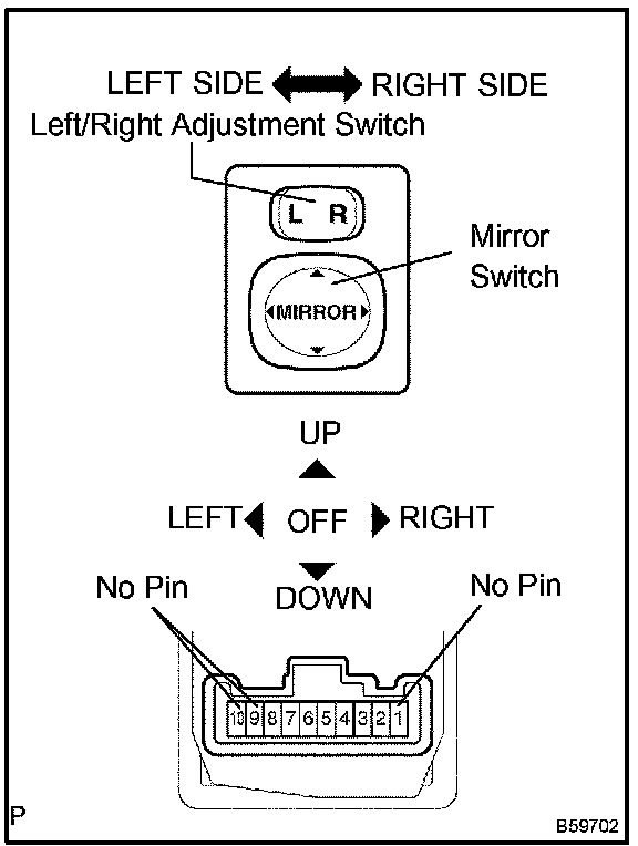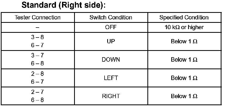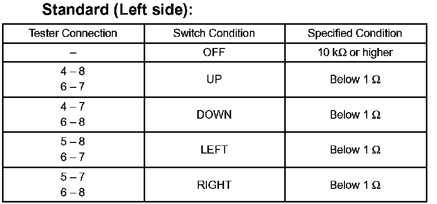 INSPECT OUTER MIRROR SWITCH ASSEMBLYa. Left side for left/right adjustment switch: