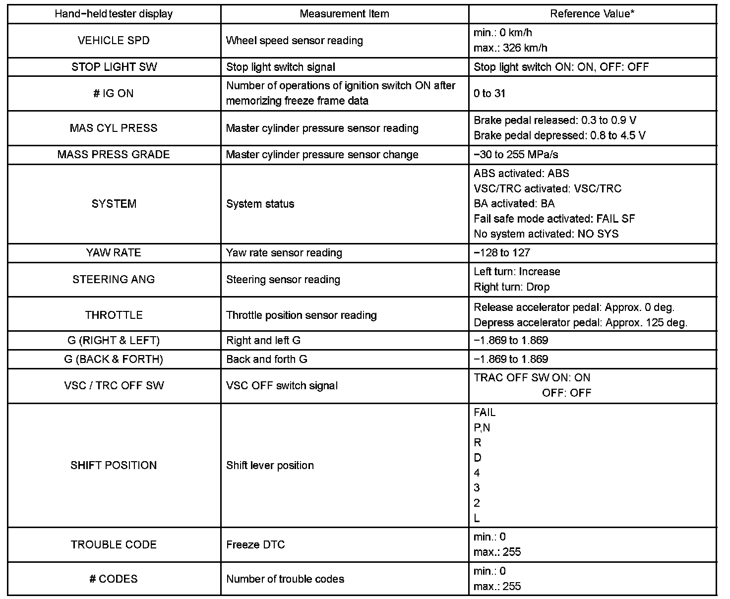 - Freeze frame data at the time the ABS operates: