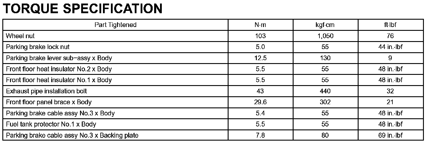 Parking Brake-Torque Specification: