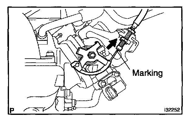 a. Push the wire into the cable so as not to move the throttle link and put a mark on the position shown in the illustration.