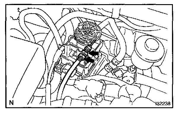 a. Remove the cruise control actuator cover and adjust the play in the accelerator control cable assembly by changing the double nut position.