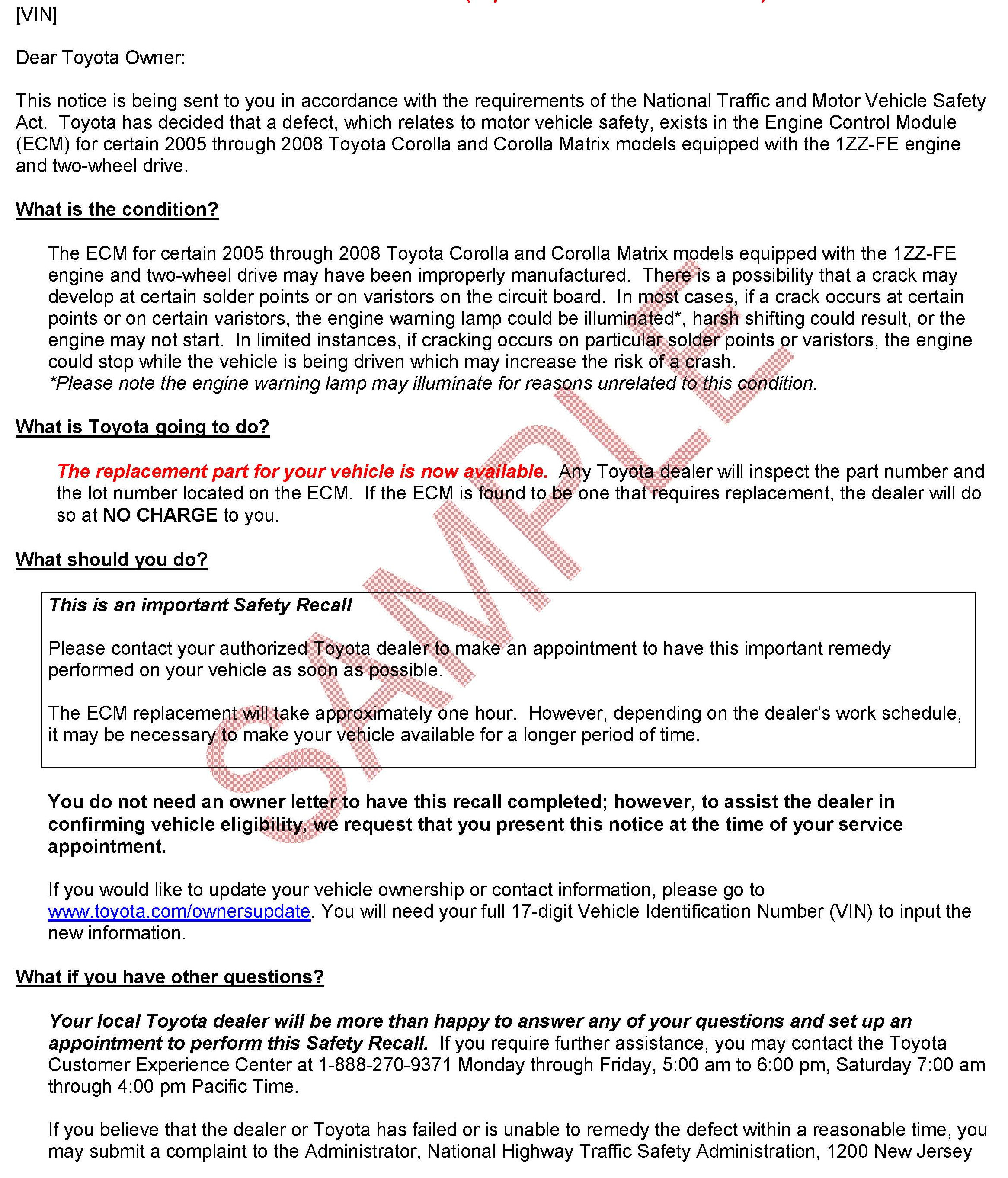 Recall - ECM Replacement For Stalling Condition