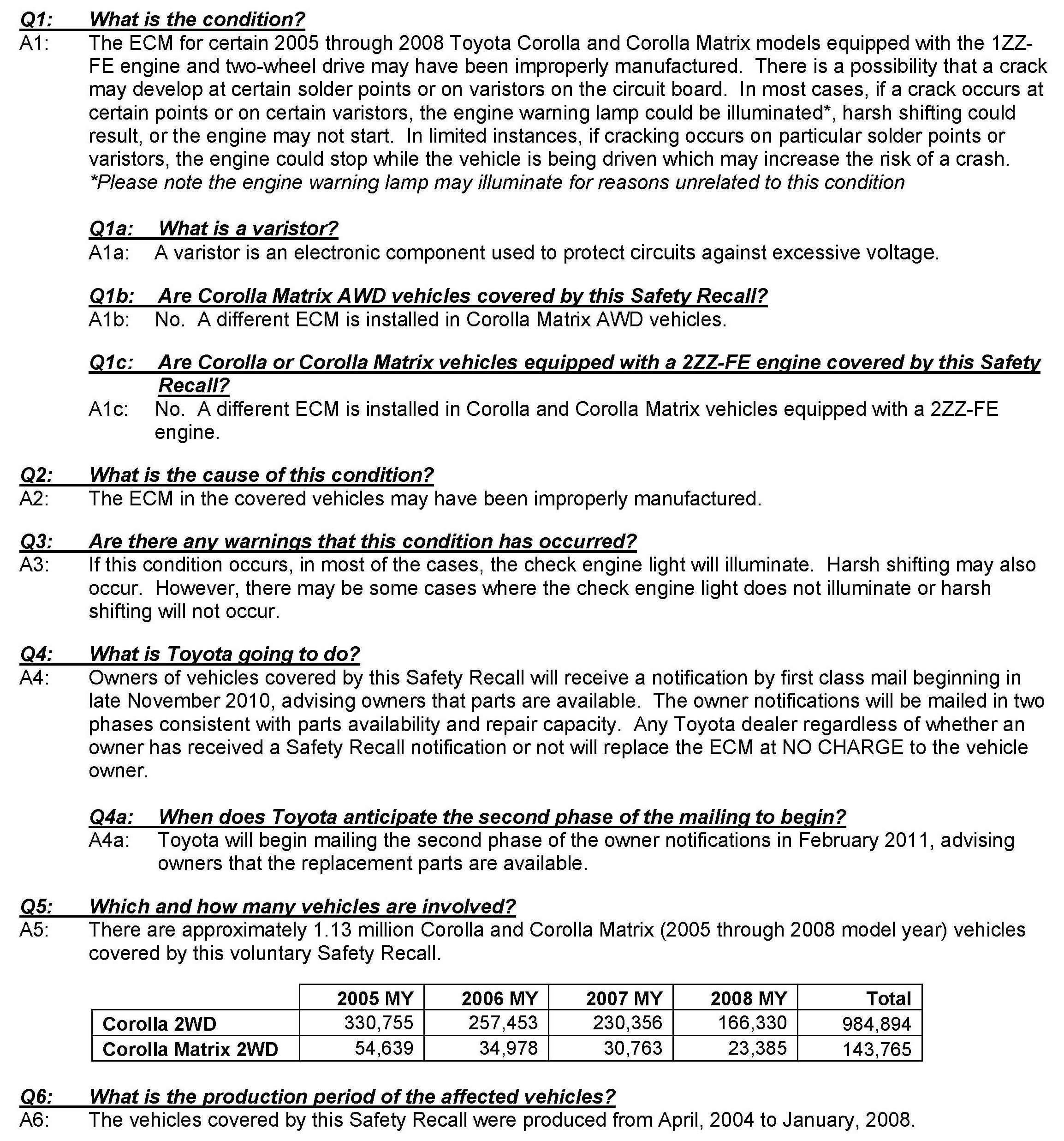 Recall - ECM Replacement For Stalling Condition