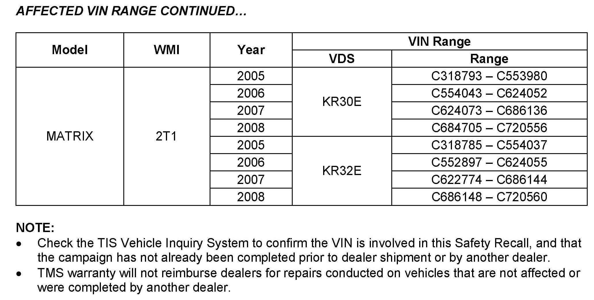 Matrix 2WD L4-1.8L (1ZZ-FE)