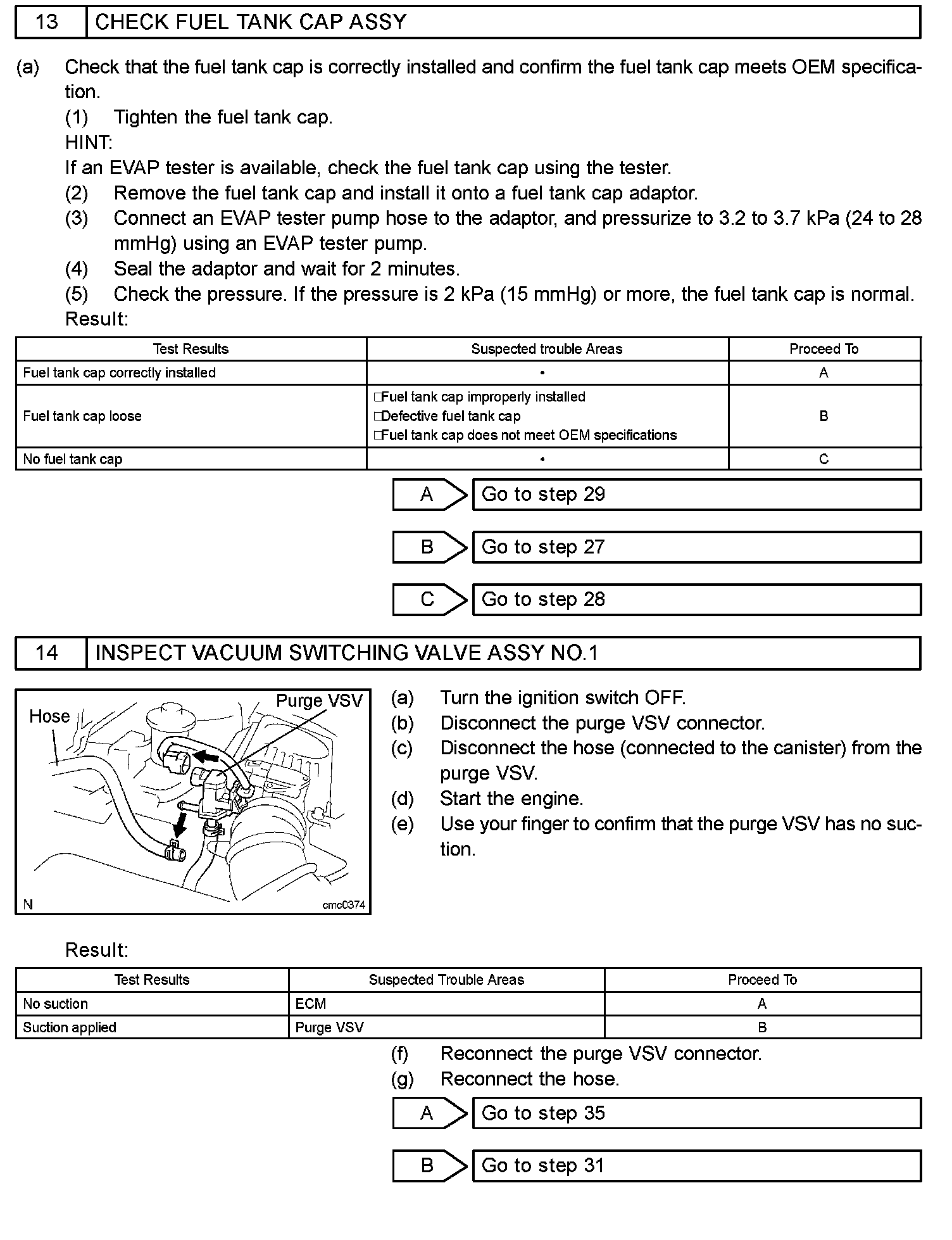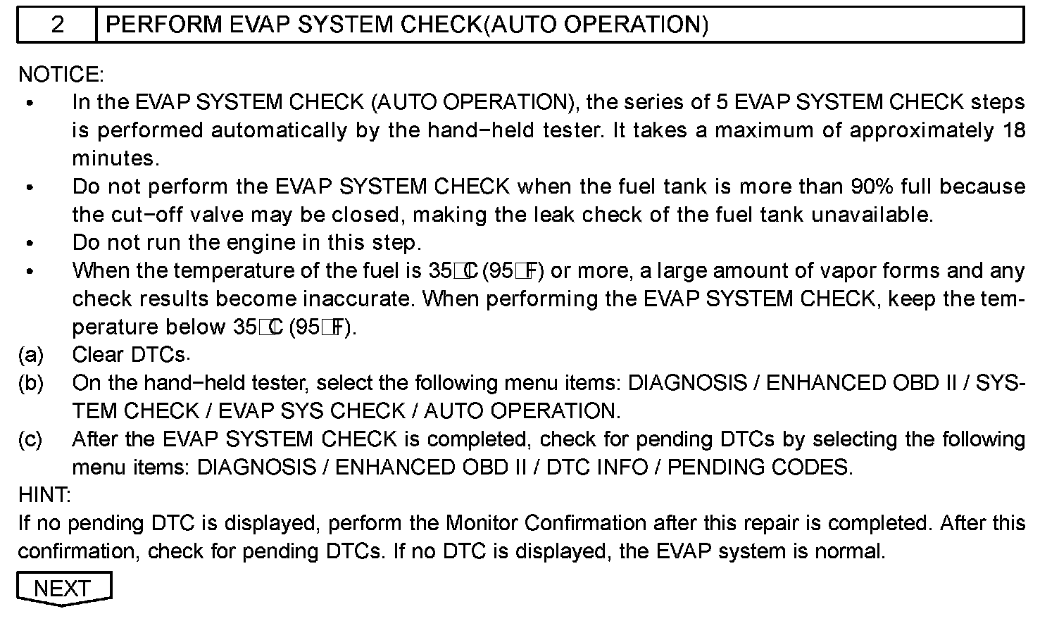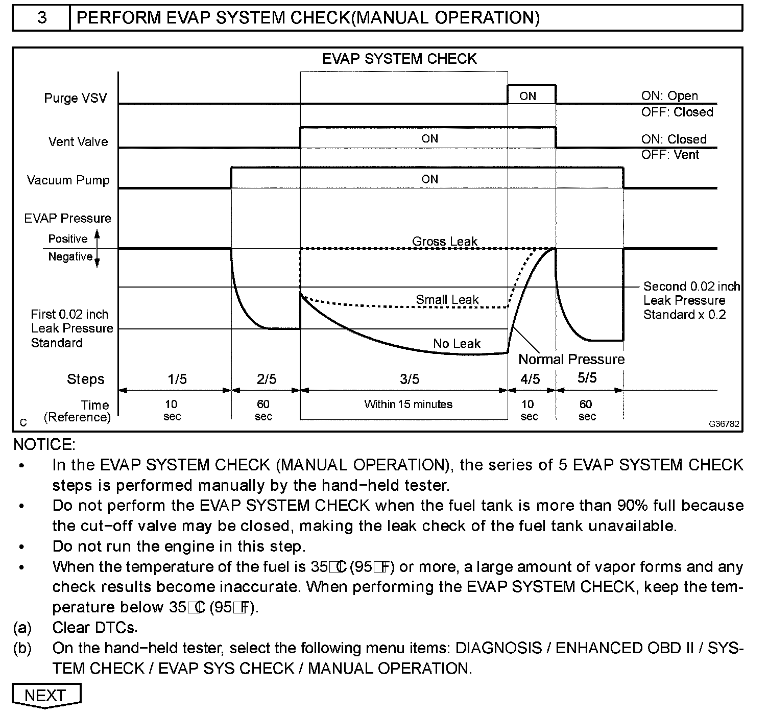 EVAP INSPECTION PROCEDUREDTCS RELATING TO EVAP SYSTEM