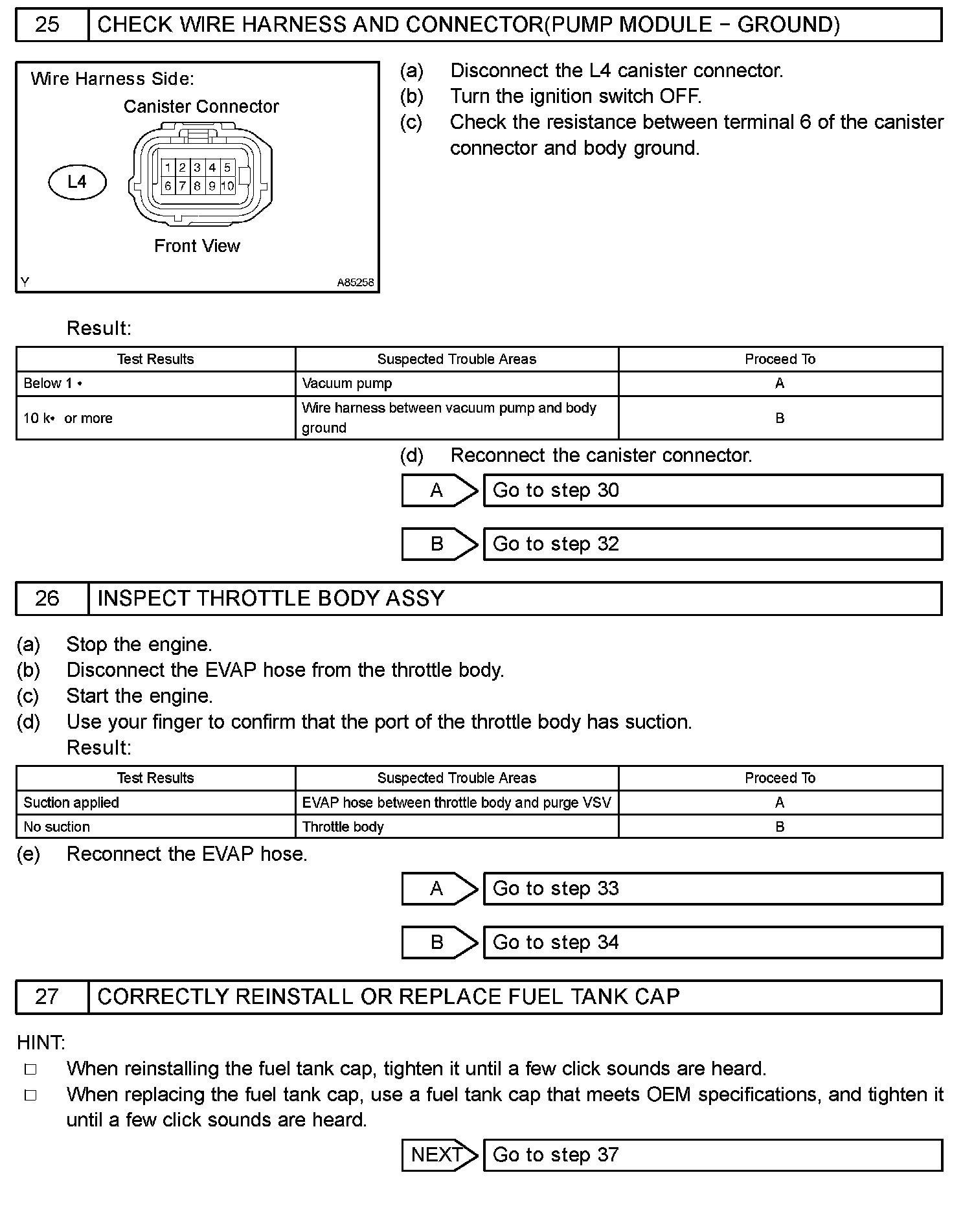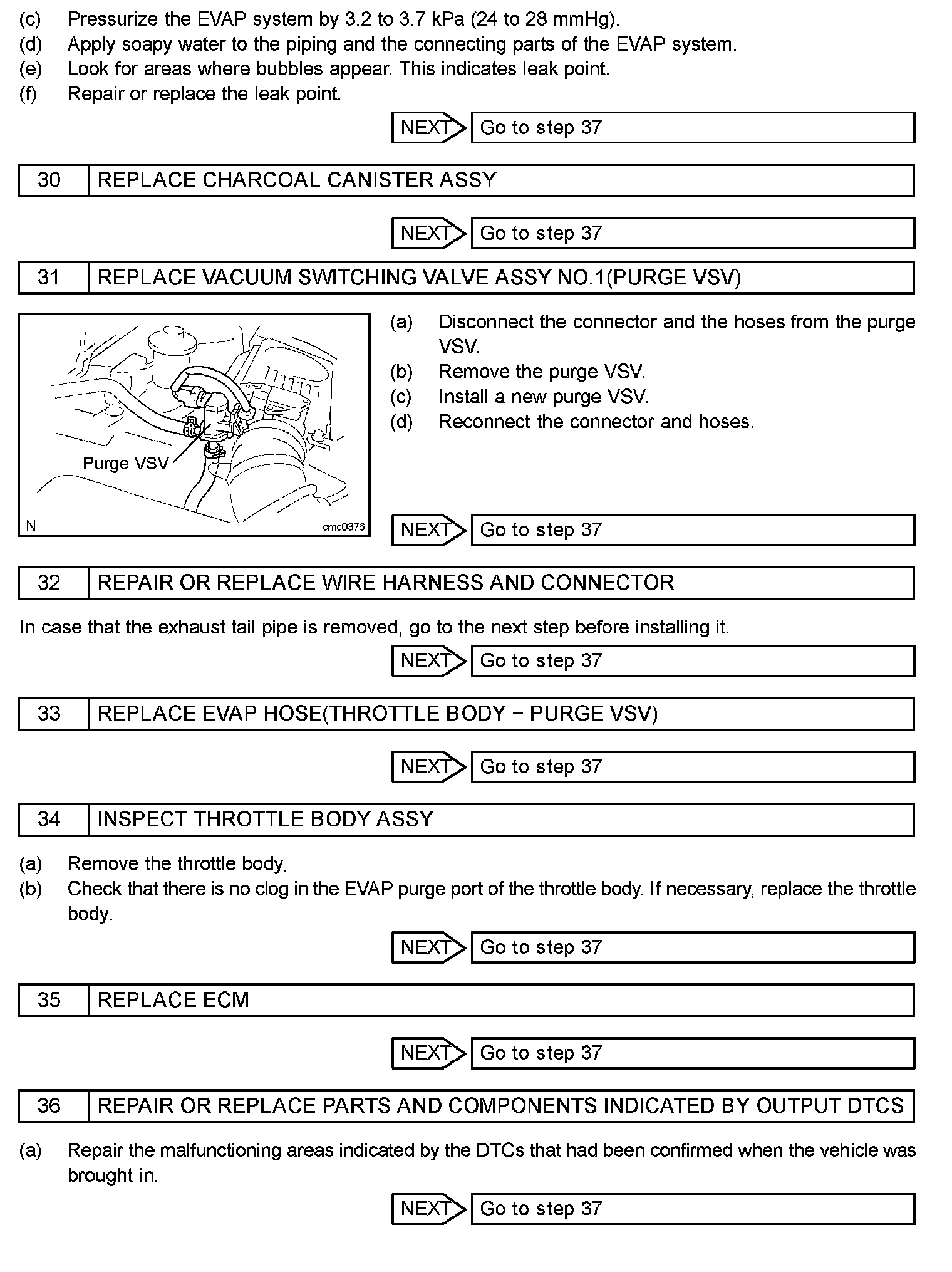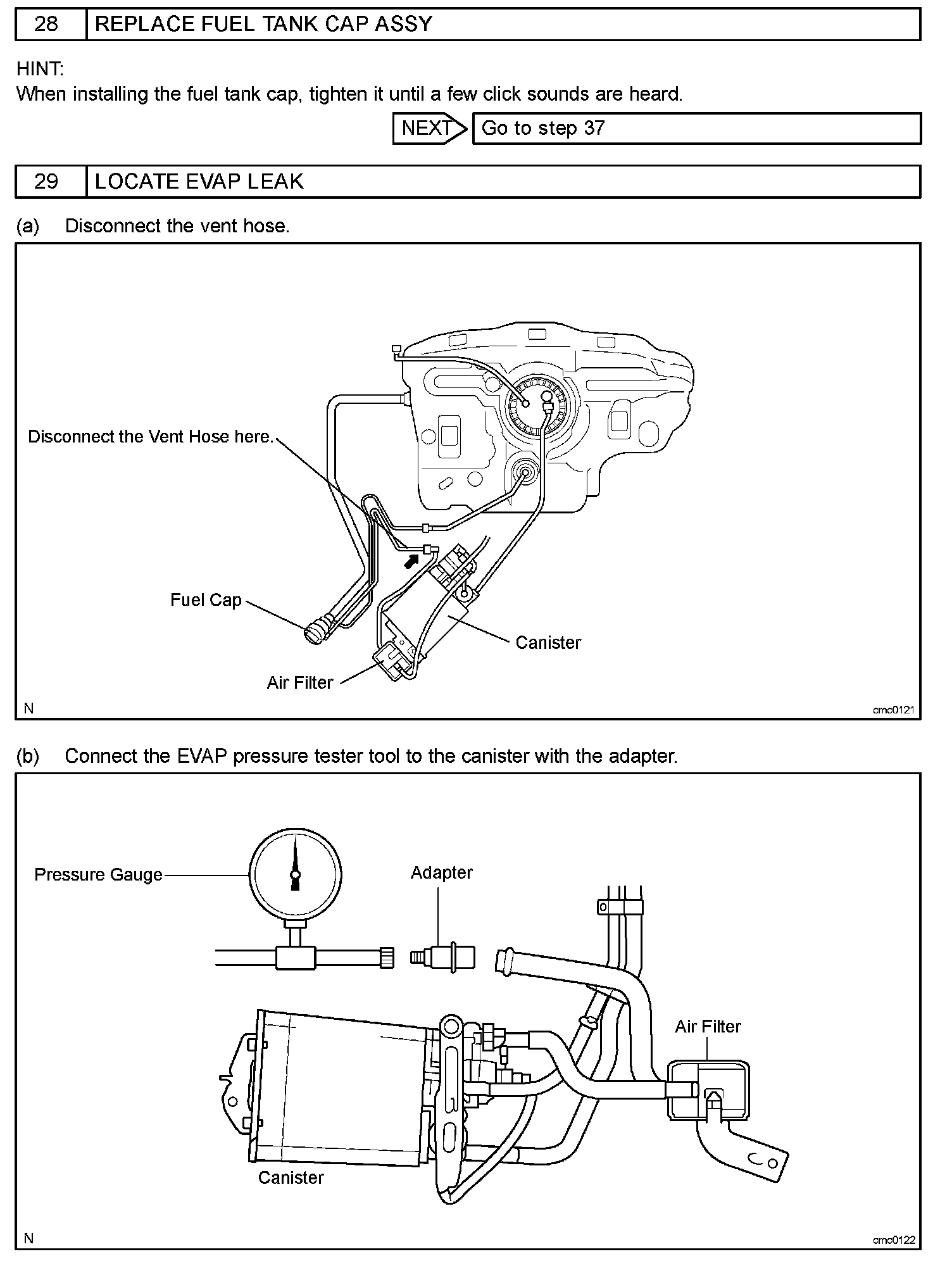 EVAP INSPECTION PROCEDUREDTCS RELATING TO EVAP SYSTEM