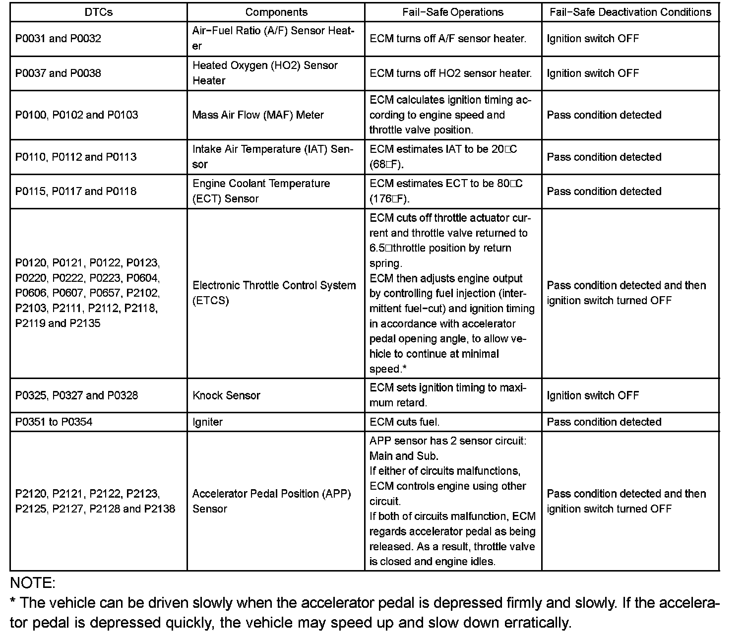 If any of the given DTCs are set, the ECM enters fail-safe mode to allow the vehicle to be driven temporarily.