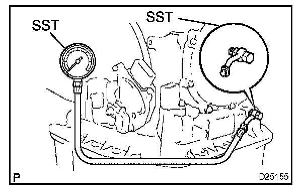 2. Remove the test plug on the left side of the transaxle case and connect SST.