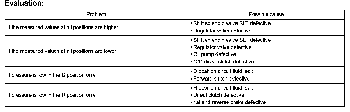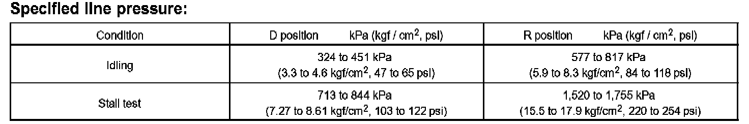 - Perform the test at the normal operating ATF (Automatic Transmission Fluid) temperature 50 to 80 degrees C (122 to 176 degrees F).