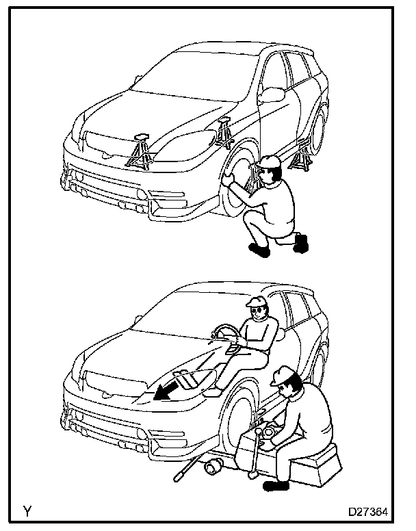 3. Support the vehicle with safety stands so that the vehicle will not lean in the vehicle's front/rear direction.
