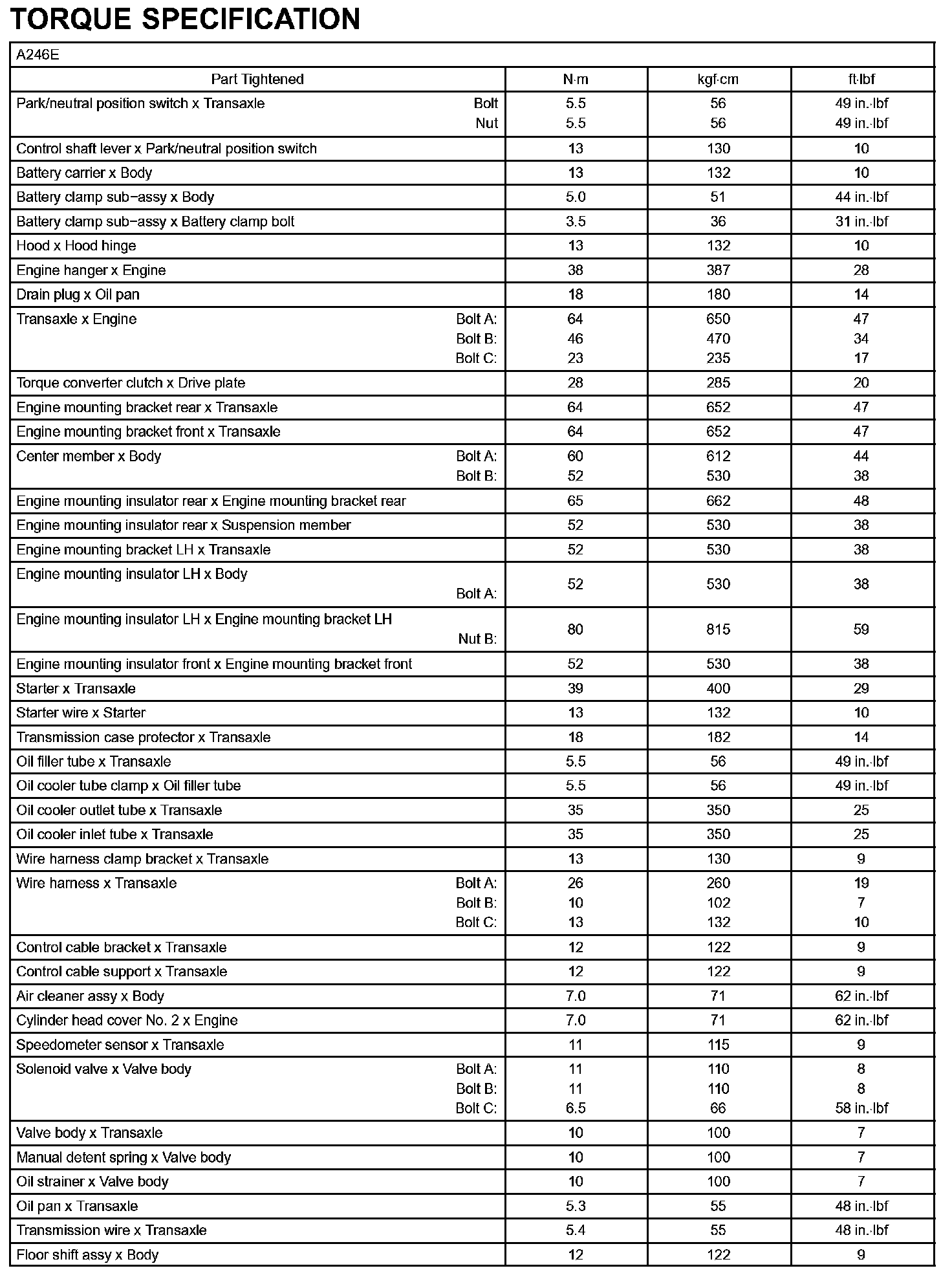 Automatic Transmission / Transaxle-Torque Specification (Part 1):