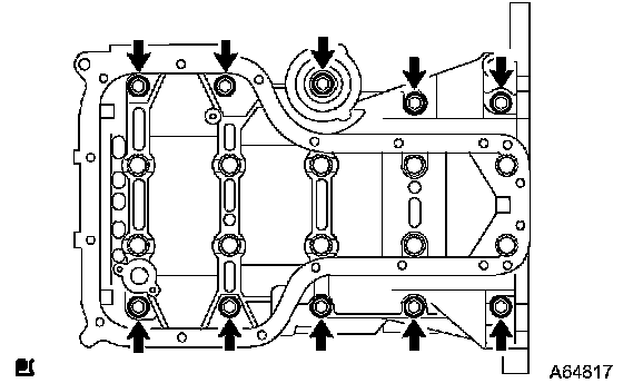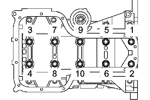 Uniformly loosen the 10 bearing cap bolts in several passes in the sequence shown in the illustration.