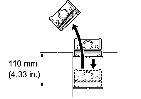 a little beyond the bottom of the ring travel, 110 mm (4.33 inch) from the top of the cylinder block.
