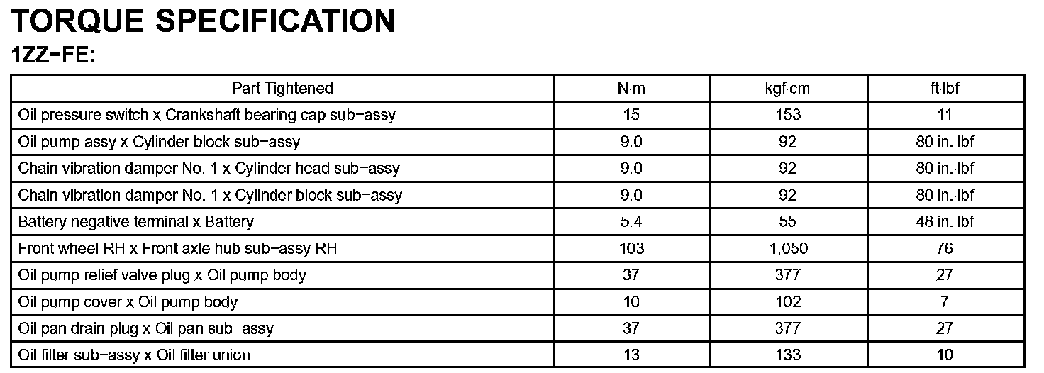 Matrix 2WD L4-1.8L (1ZZ-FE)