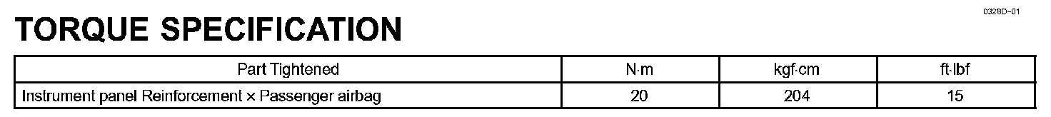 Instrument Panel/Meter-Torque Specification: