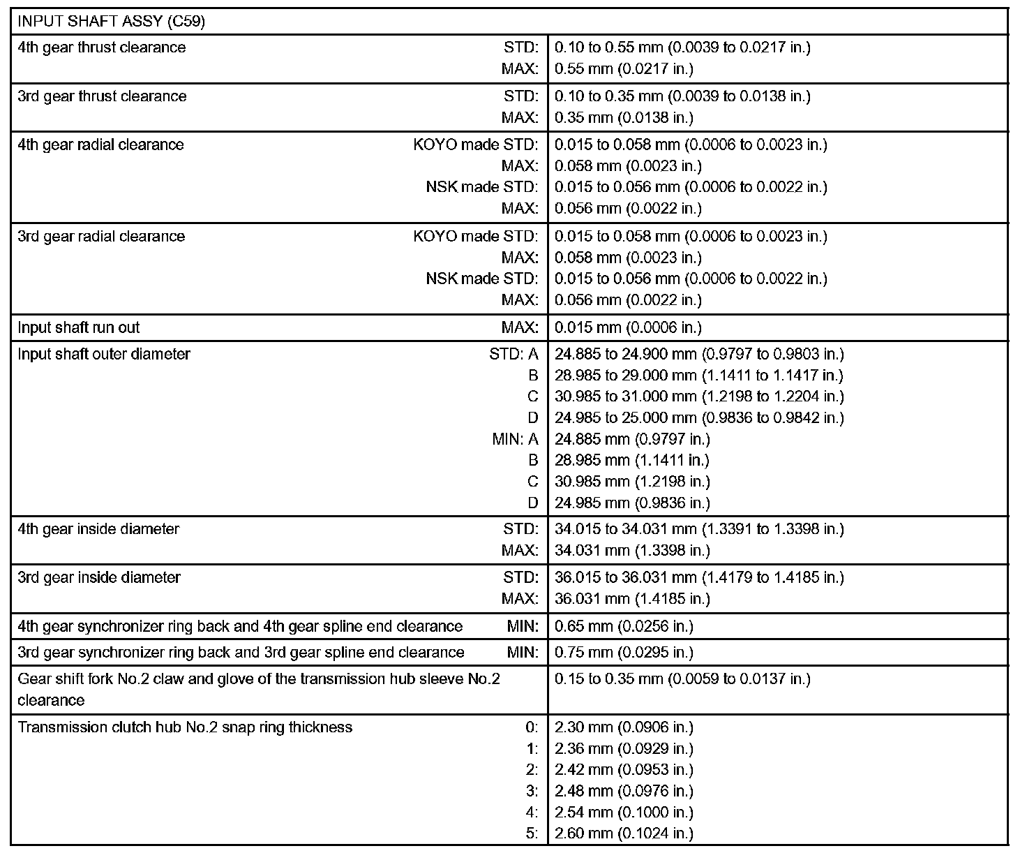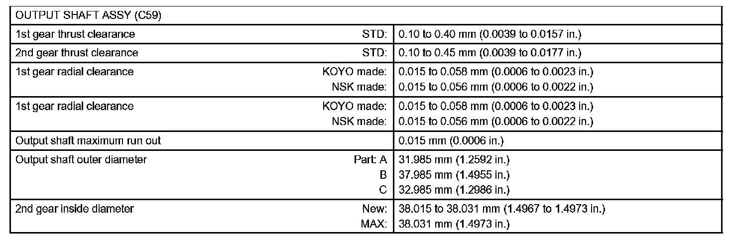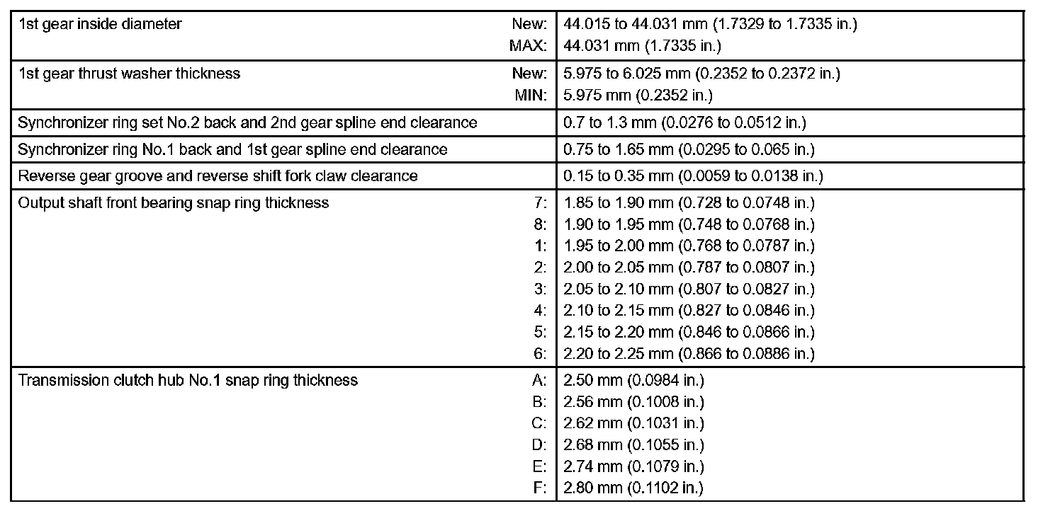 Manual Transmission / Transaxle-Service Data (Part 2):