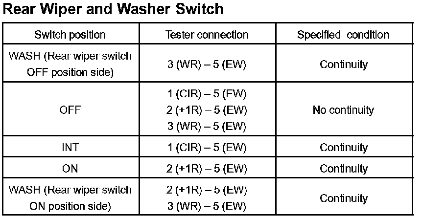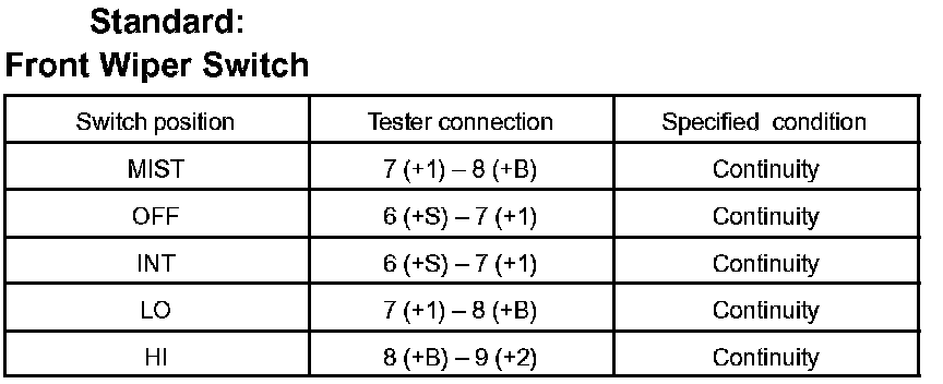 WINDSHIELD WIPER SWITCH ASSEMBLYa. Continuity Check