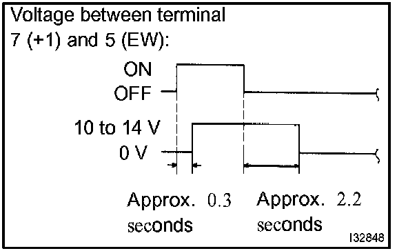 1. Connect the voltmeter (+) terminal to terminal 7 (+1) of the connector, the voltmeter (-) terminal to terminal 5 (EW) of the connector.