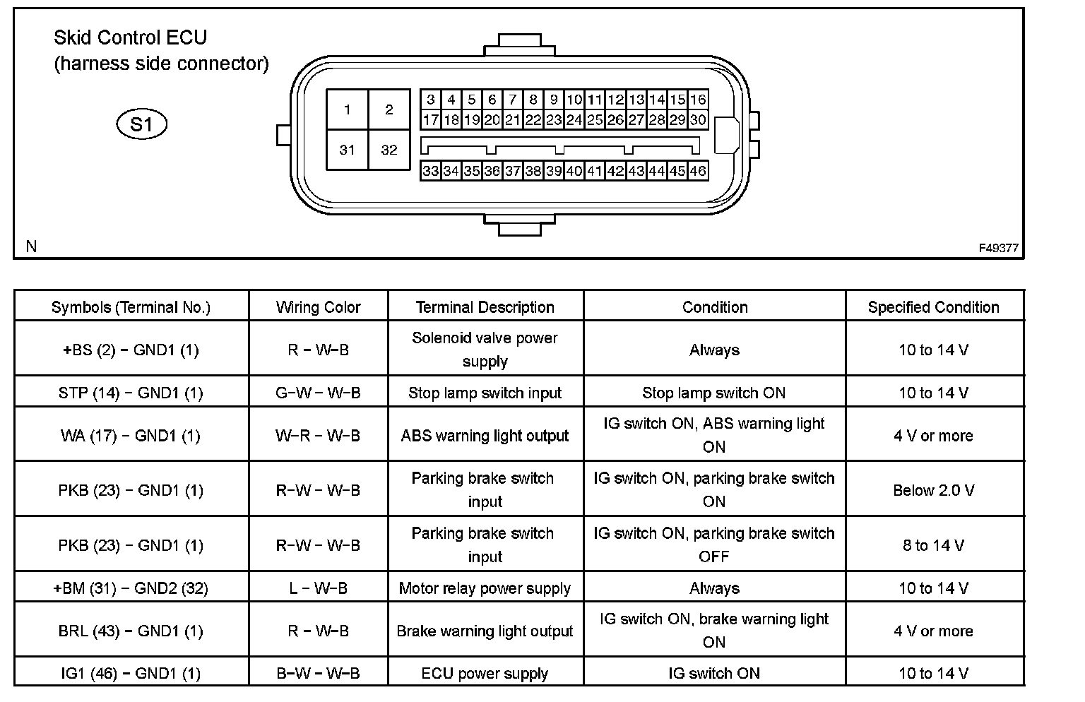 HINT: Voltage can not be measured with the connector connected to the skid control ECU as the connector is water resistance.