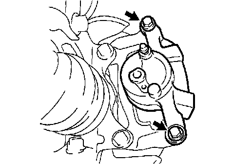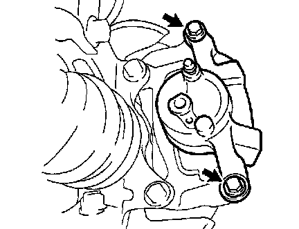 a) Remove the 2 front disc brake pad support plates from the cylinder mounting.