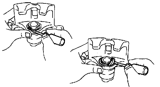 a) Using a screwdriver, remove the piston seal from the disc brake cylinder.