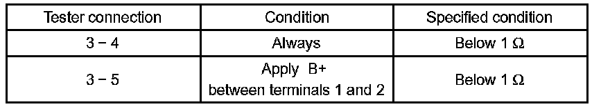 If the resistance is not as specified, replace the heater blower motor relay assembly.