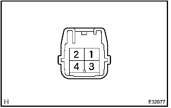 (1) Connect the positive (+) lead from the battery to terminal 1 and the negative (-) lead to terminal 4, then check that the indicator lights up. If operation is not as specified, replace the combination switch assembly.