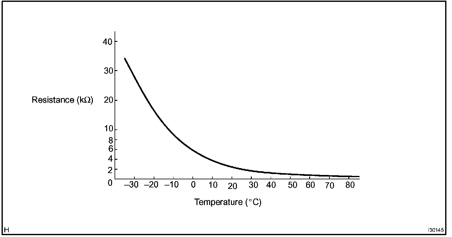 a. Check resistance between terminals 1 and 2 of cooler thermistor No. 1 at each temperature, as shown in the chart.