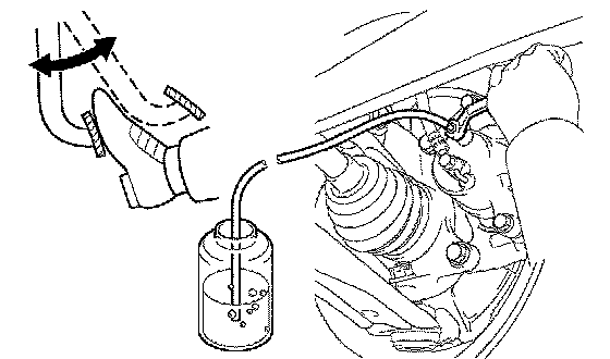 ^ During this procedure, the pedal will feel heavy, but completely depress it so that the brake fluid comes out from the bleeder plug.