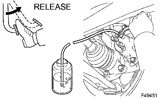 c) When fluid stops coming out, tighten the bleeder plug, then release the brake pedal.