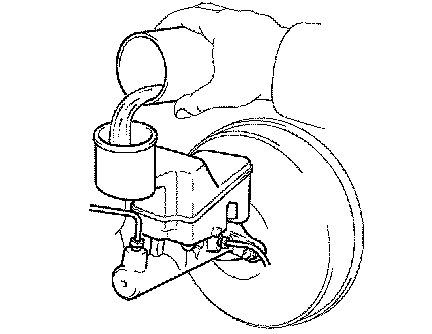 ^ Make sure that the brake fluid in the master cylinder reservoir tank does not become empty.
