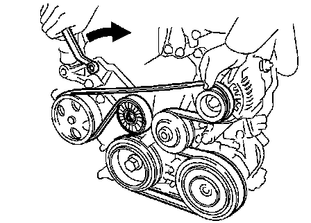a) Turn the drive belt tensioner clockwise to relive tension on the belt, and then remove the belt.