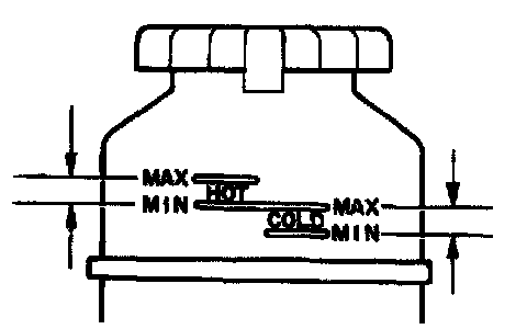 HINT: Check that the fluid level is within the HOT LEVEL range on the reservoir cap. If the fluid is cold, check that it is within the COLD LEVEL range.
